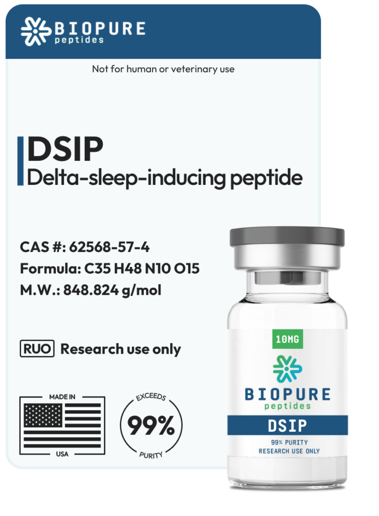 DSIP 10mg by BioPure Peptides is a premium, research-grade peptide supplied in a lyophilized vial for laboratory and analytical use. Manufactured in the USA and tested for purity, this compound is intended strictly for research purposes only.