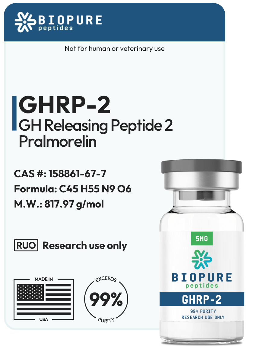GHRP-2 is a synthetic growth hormone secretagogue which has been extensively studied for its ability to bind to the ghrelin/growth hormone secretagogue receptor. Research indicates that GHRP-2 can enhance muscle growth, regulate the immune system, and improve sleep cycles. Notably, GHRP-2 has demonstrated oral bioactivity in research trials, offering a convenient route of administration for experimental purposes.