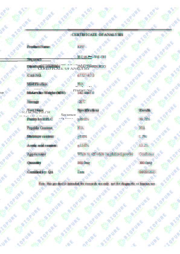 KPV (Ac-KPV-NH₂) is a powerful anti-inflammatory peptide under active investigation for its broad therapeutic potential. Current research highlights its promise in managing inflammatory bowel disease, where it has demonstrated significant benefits in reducing inflammation and promoting tissue recovery.