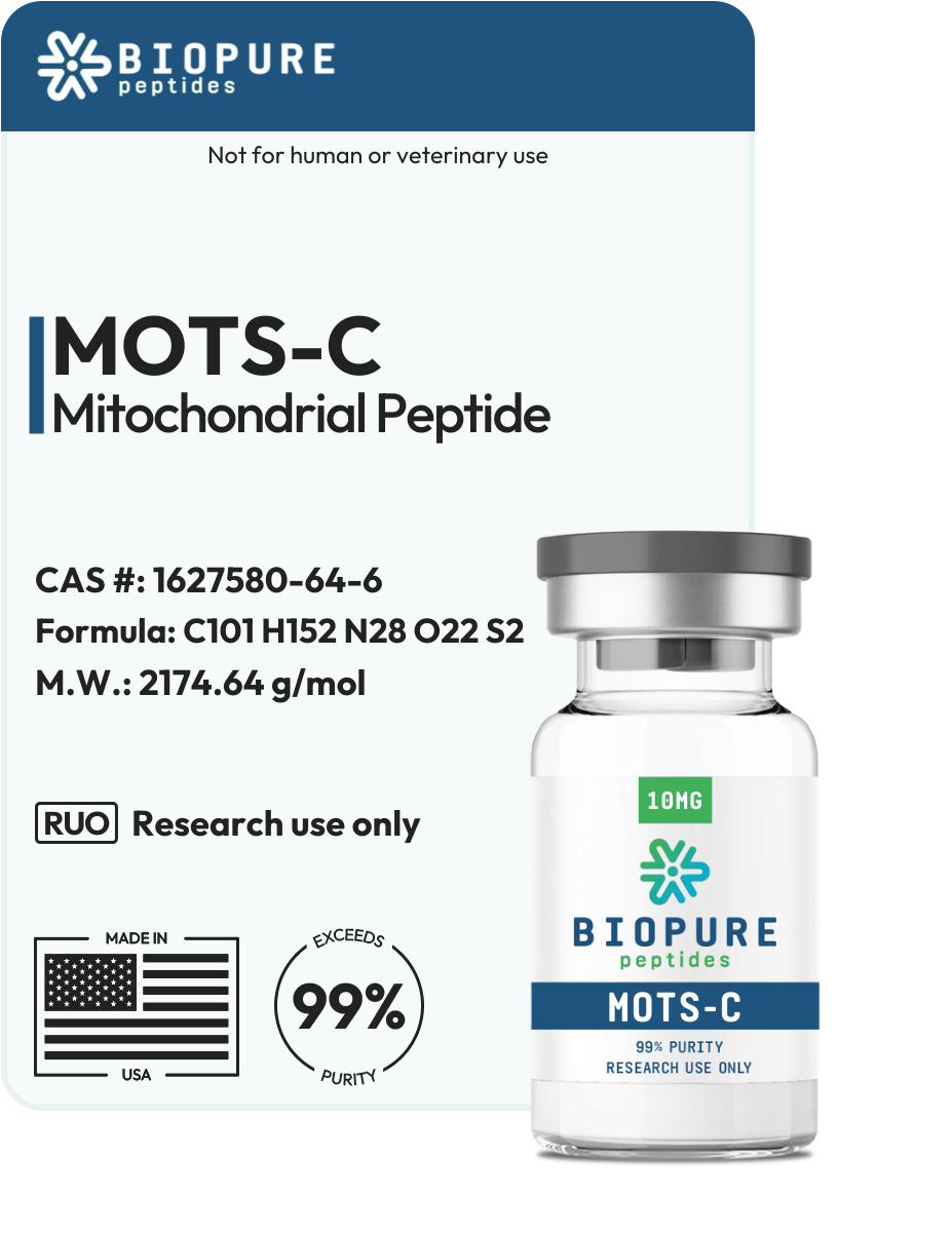 MOTS-c is a mitochondrial-derived peptide which has been extensively studied for its role in promoting metabolic homeostasis and longevity. Research suggests that MOTS-c can enhance exercise capacity, reduce obesity, and improve insulin resistance. Additionally, it has shown potential in mitigating disease processes such as osteoporosis.