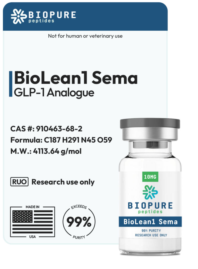 BioLean1 Sema GLP-1 is a laboratory-grade research compound provided in a 10mg precision vial, developed for scientific, analytical, and investigational applications.