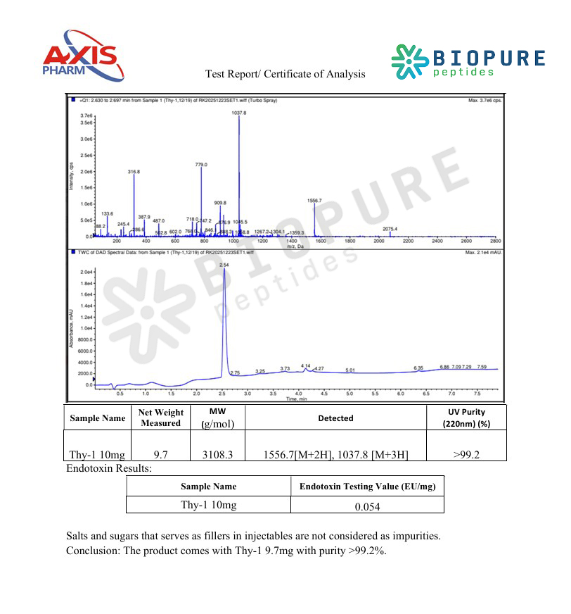 Thymosin Alpha-1 (Tα1) is a synthetic, research-grade peptide widely utilized in laboratory and scientific studies. Produced to high purity standards, this peptide is intended strictly for research use only and is not approved for human or animal consumption, therapeutic use, diagnostic use, or clinical applications.