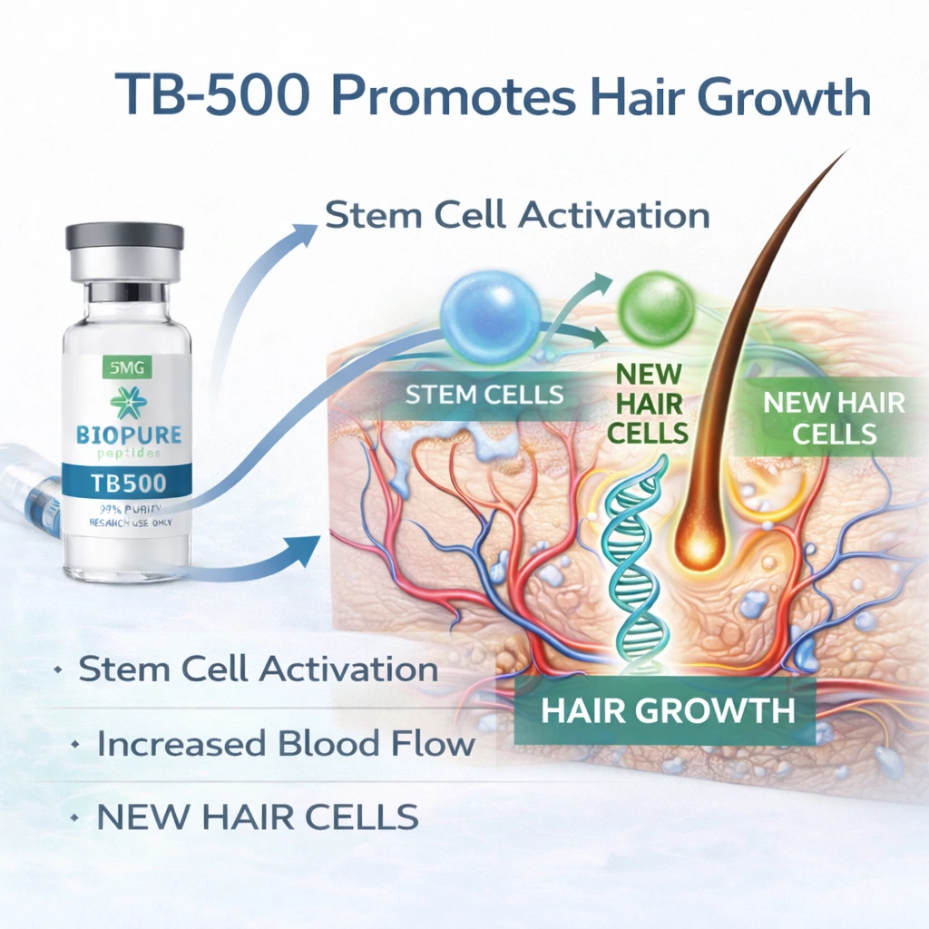Some research explores thymosin beta-4–related peptides in hair follicle signaling and growth cycle regulation, which has driven interest in TB-500 within hair and scalp studies.