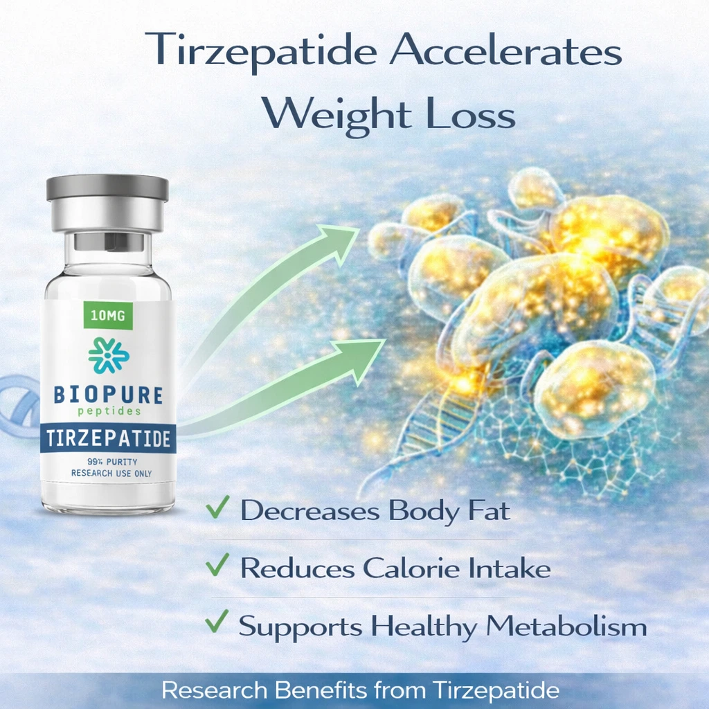 Studies suggest Tirzepatide may accelerate weight loss by combining appetite regulation with improved metabolic efficiency. Research indicates it supports reduced caloric intake and enhanced fat metabolism through multi-pathway hormonal signaling.