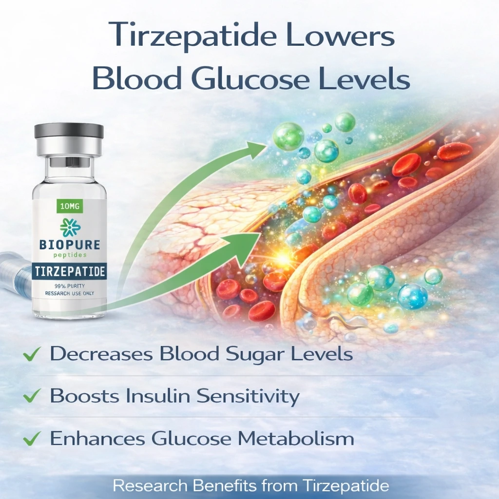 Tirzepatide is widely studied for its ability to significantly reduce blood glucose levels by improving insulin signaling and glucose utilization. Research indicates it supports balanced glycemic control through dual receptor pathway activity related to metabolic regulation.